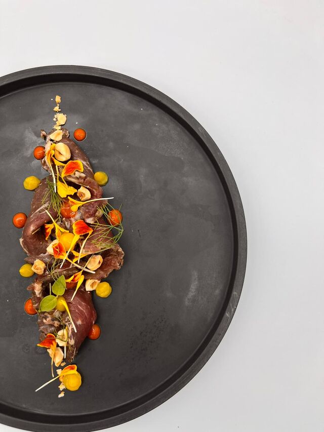 Superato l'ingresso con la cucina a vista, la sala si trova al primo piano di un palazzo affacciato su una graziosa piazzetta. Il nome spagnolo non è stato scelto casualmente: lo chef ha lavorato a